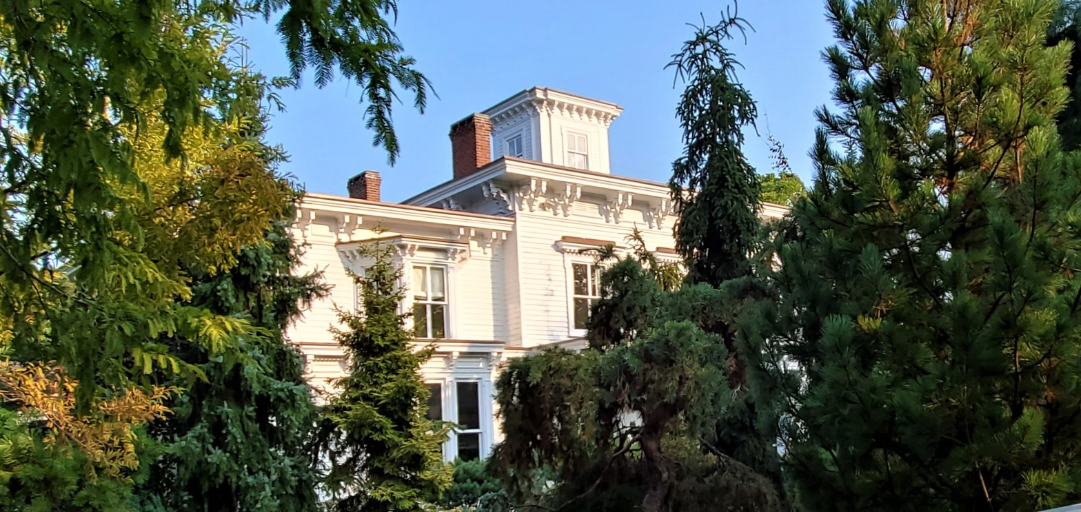 A high brick wall and towering trees can’t obscure the notoriety of this Nyack mansion from curious onlookers.